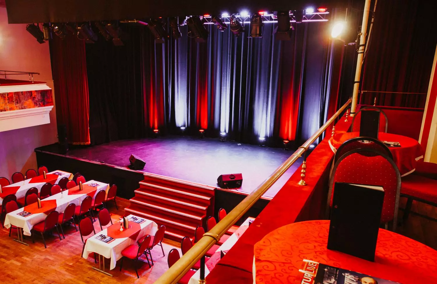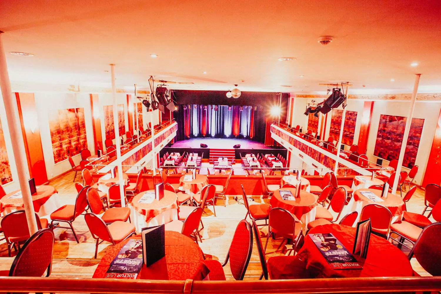 Im 2002 eröffneten DASDIE BRETTL stehen bis zu 450 Plätzen an Tischen zur Verfügung. Hier erwartet Sie unter anderem Varieté, Show, Kabarett und Musik. Außerdem können Sie sich von unserer hauseigenen Gastronomie vor der Show und während der Pause verwöhnen lassen.
