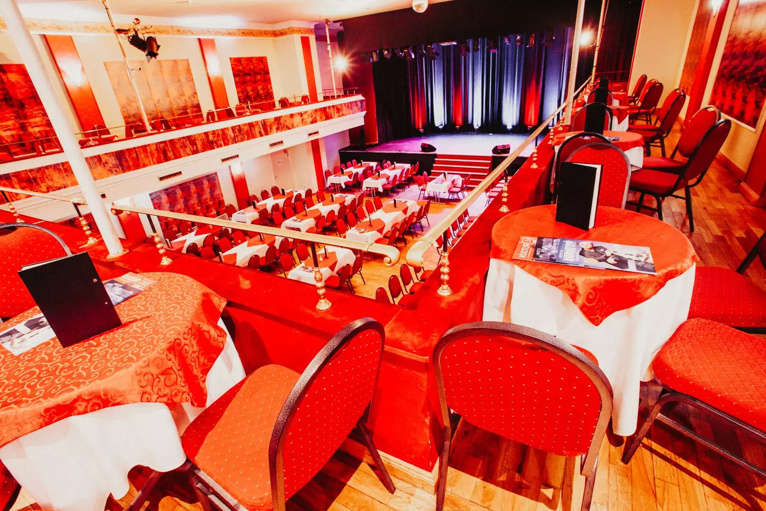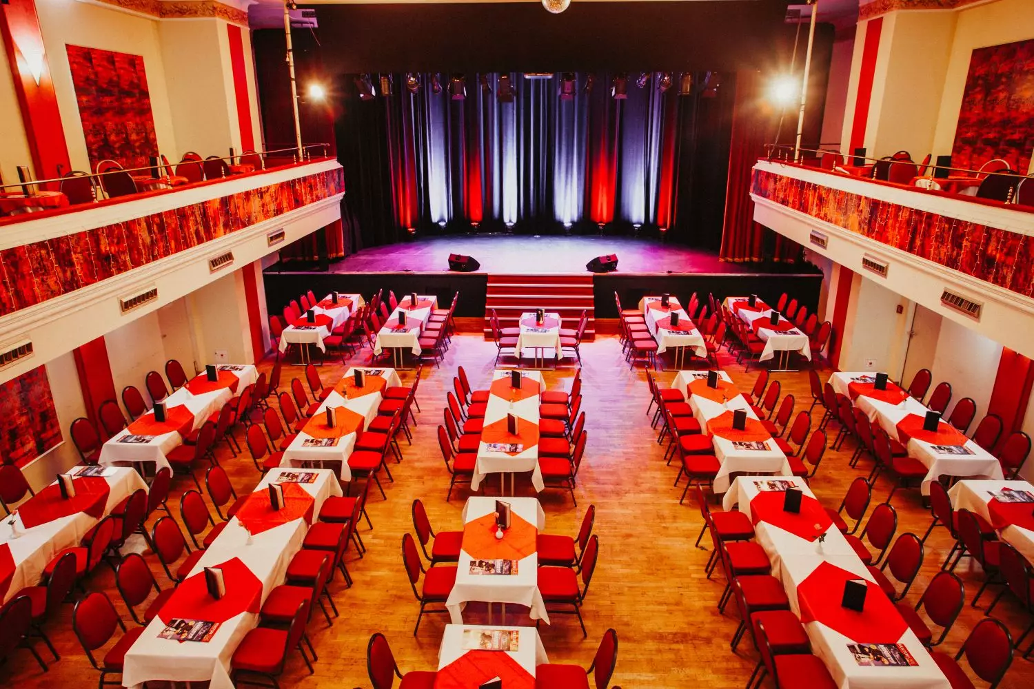 Gruppen werden an Tischen gemeinsam nach Personenzahl durch unser Einlasspersonal platziert - ggf. zusammen mit anderen Gästen an einem Tisch. Jede Veranstaltung verfügt über verschiedene Tischvariationen und wird individuell vorbereitet. Ab einer Gruppengröße von fünf Personen wird mittels eines Namensschildes der Platz für die entsprechende Personenzahl zusammenhängend blockiert. Explizite Tischwünsche können aus organisatorischen Gründen jedoch nicht zugesagt werden. Diese zusammenhängenden Plätze können wir nur bis 15 Minuten vor Veranstaltungsbeginn garantieren.
