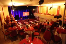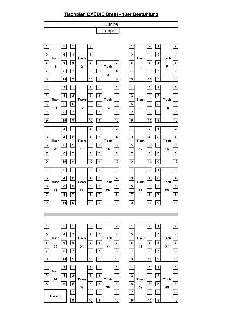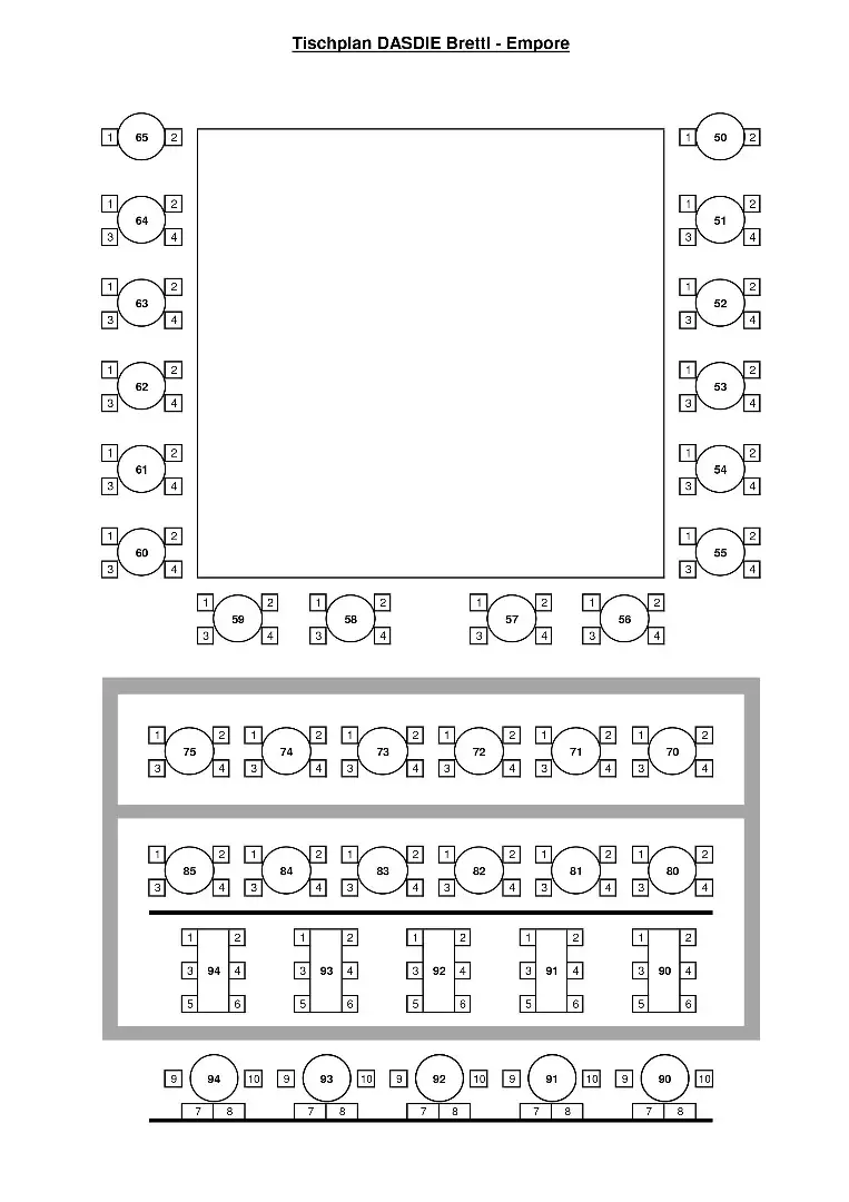 Gruppen werden an Tischen gemeinsam nach Personenzahl durch unser Einlasspersonal platziert - ggf. zusammen mit anderen Gästen an einem Tisch. Jede Veranstaltung verfügt über verschiedene Tischvariationen und wird individuell vorbereitet. Ab einer Gruppengröße von fünf Personen wird mittels eines Namensschildes der Platz für die entsprechende Personenzahl zusammenhängend blockiert. Explizite Tischwünsche können aus organisatorischen Gründen jedoch nicht zugesagt werden. Diese zusammenhängenden Plätze können wir nur bis 15 Minuten vor Veranstaltungsbeginn garantieren.