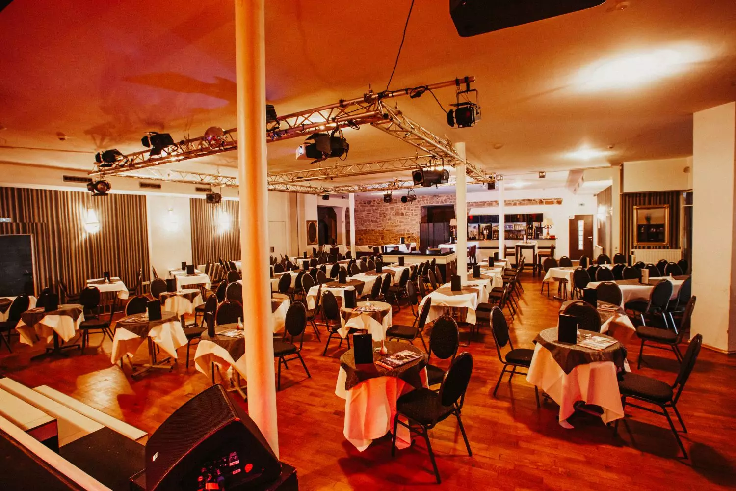 Gruppen werden an Tischen gemeinsam nach Personenzahl durch unser Einlasspersonal platziert - ggf. zusammen mit anderen Gästen an einem Tisch. Jede Veranstaltung verfügt über verschiedene Tischvariationen und wird individuell vorbereitet. Ab einer Gruppengröße von fünf Personen wird mittels eines Namensschildes der Platz für die entsprechende Personenzahl zusammenhängend blockiert. Explizite Tischwünsche können aus organisatorischen Gründen jedoch nicht zugesagt werden. Diese zusammenhängenden Plätze können wir nur bis 15 Minuten vor Veranstaltungsbeginn garantieren.