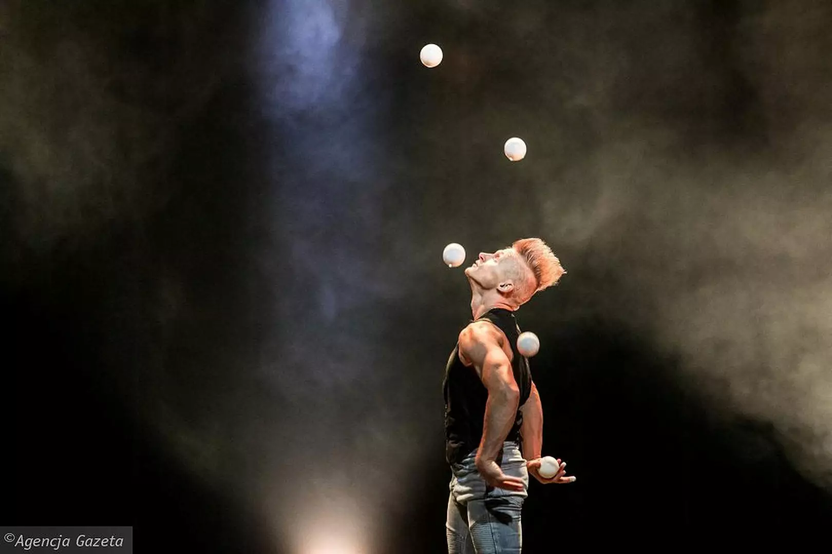 Mit elektrisierender Energie, krasser Dynamik und faszinierendem Charme begeistert Grygorii Lovygin aus der Ukraine sein Publikum. In rasanten, nahezu unglaublichen Arrangements, jongliert Grygoriy seine Bälle über die Bühne, die jedoch wie von Geisterhand immer zu ihm zurückkehren. Diese Jonglage ist temporeich, laut und modern!