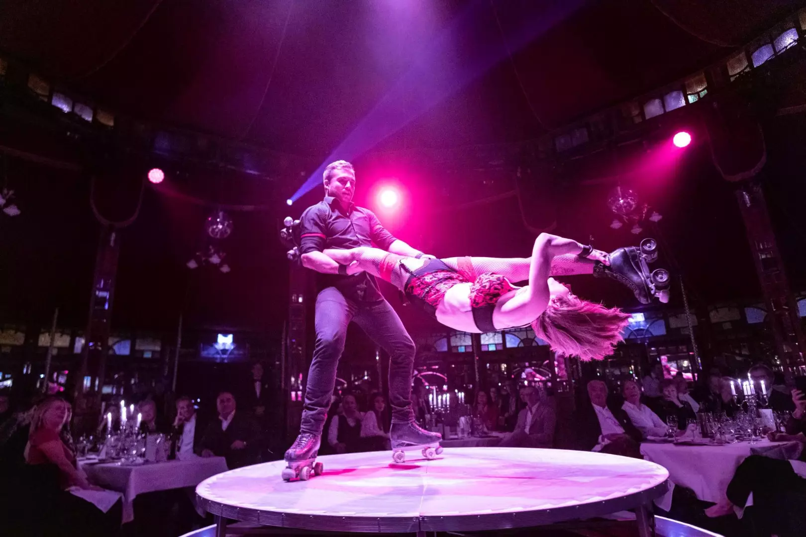 Sie vereinen ihre Leidenschaft für Unterhaltung und ihre Talente, um eine Rollschuhnummer auf die Beine zu stellen, die Ihnen buchstäblich den Atem rauben wird.